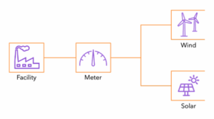 Figure 1: A green hydrogen facility, its power meter, and offsite wind and solar